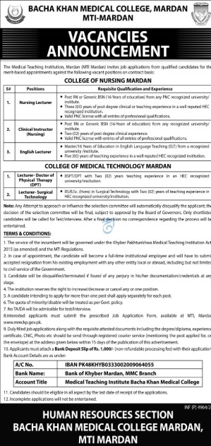 Candidates if you are seeking Bacha Khan Medical College Jobs In Mardan December 2025 if yes. It would be best if you tried to complete read Bacha Khan Medical College job because you can easily apply for these vacancies Nursing Lecturer Clinical Instructor (Nursing) English Lecturer.